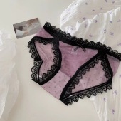 日系性感纯欲蕾丝内裤女交叉镂空无痕低腰网纱透气棉档女士三角裤