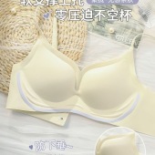法式简约一片式无痕无钢圈文胸罩少女厚杯小胸聚拢调整型学生内衣