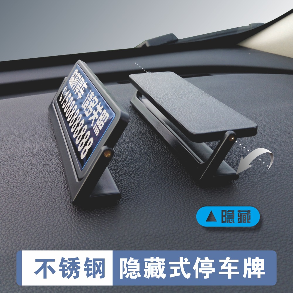 鑫侬汽车不锈钢金属临时停车牌挪车旋转创意隐藏式电话号码停靠牌