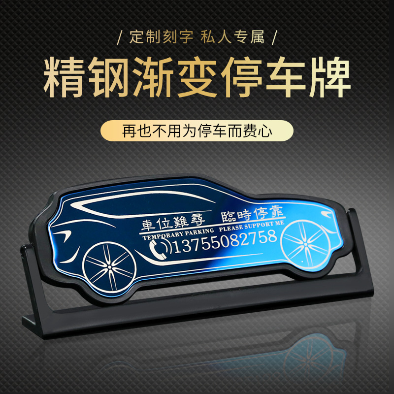 汽车临时停车卡挪车牌吸盘吸附不锈钢激光雕刻定制电话号码移车牌