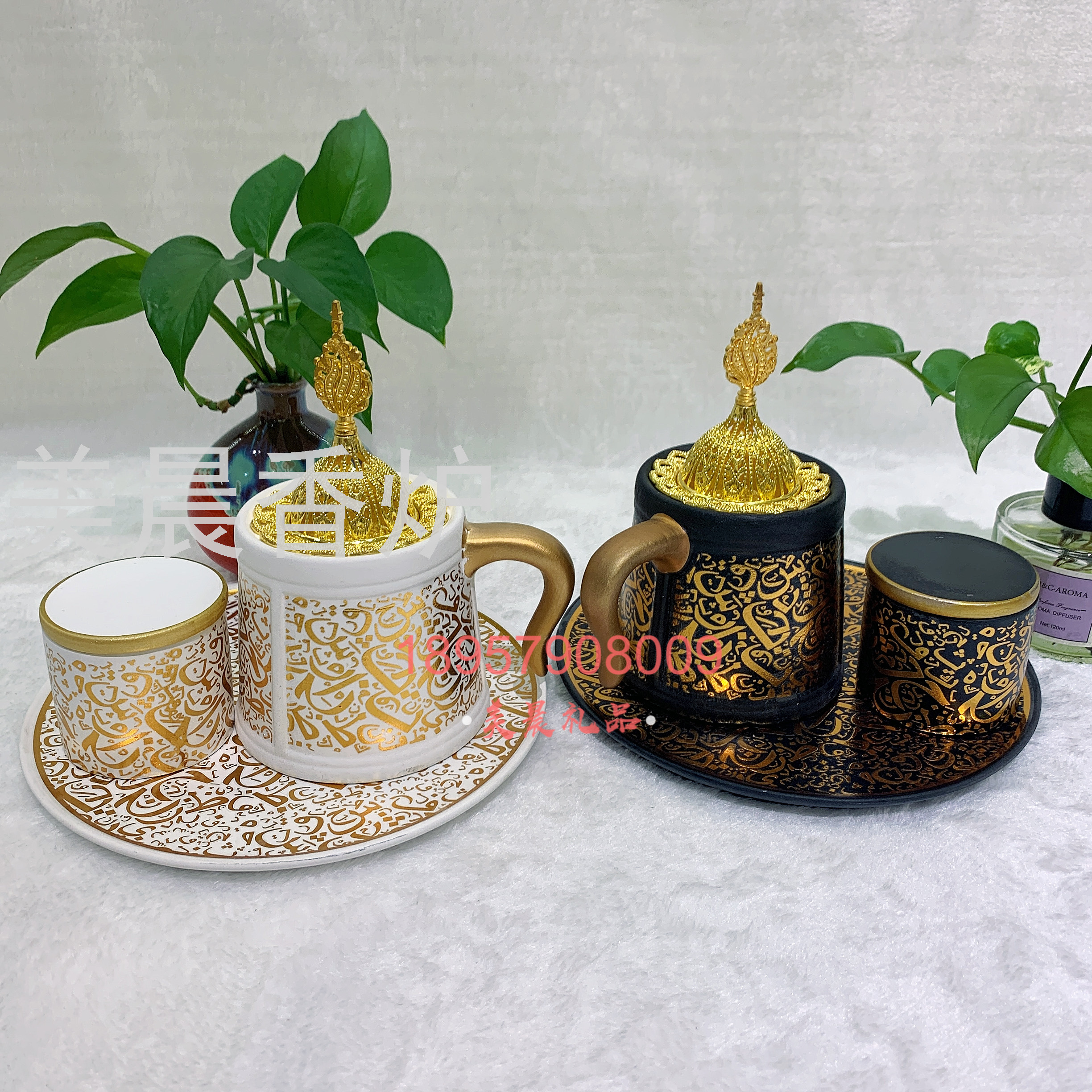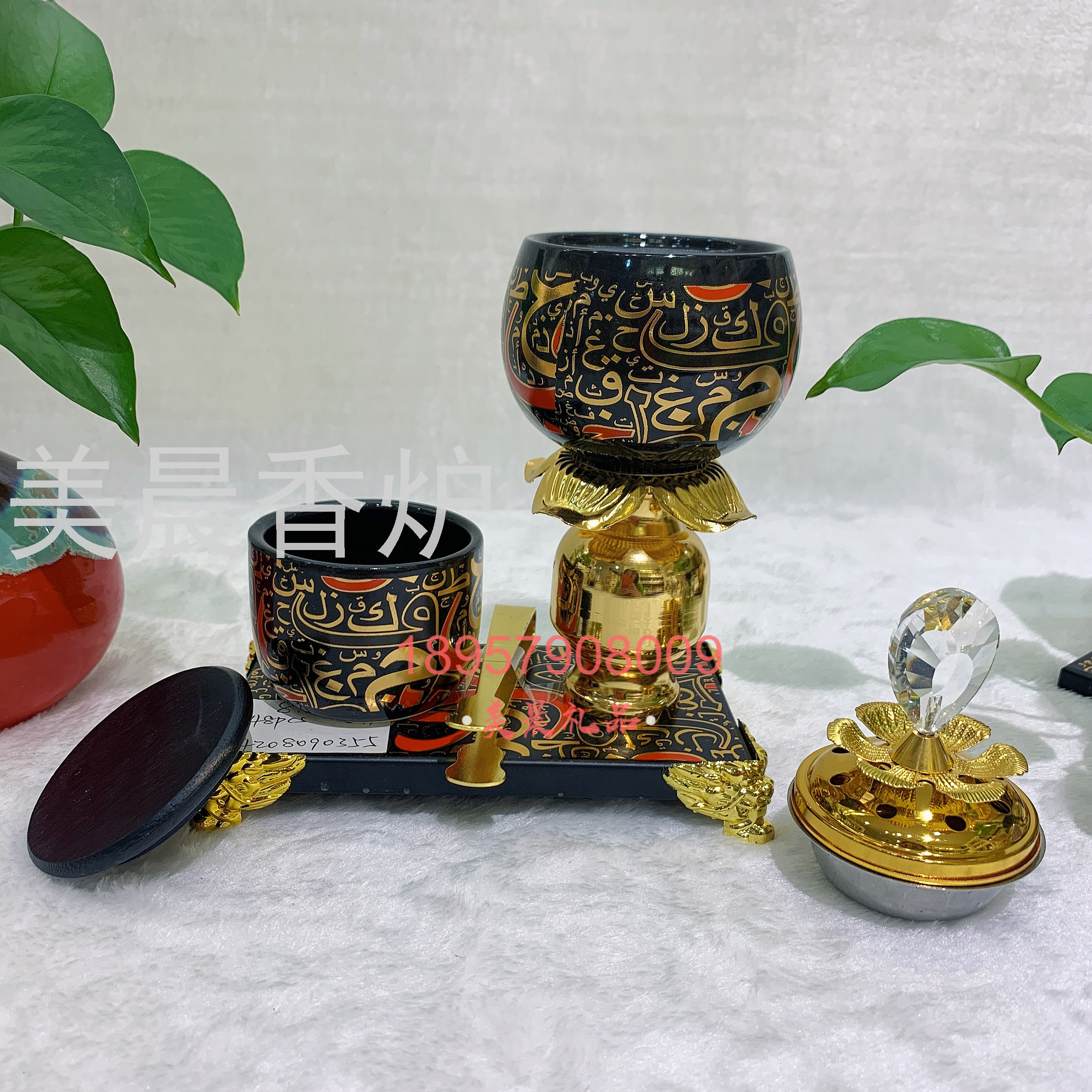 阿拉伯金属炭炉套装洒水器熏香炉 incense burner
