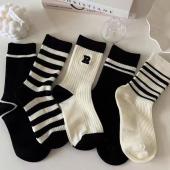 10双袜子女情侣中筒秋冬季袜子ins条纹百搭洋气防臭百搭运动袜