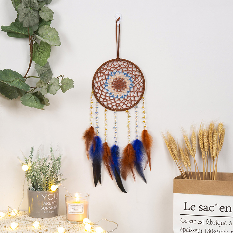 工厂直销印第安羽毛捕梦网吊饰创意家居装饰品宿舍补梦网挂件风铃