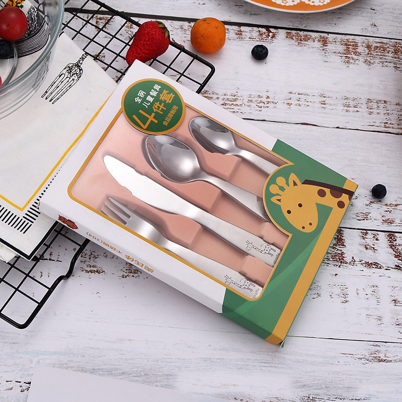 304不锈钢儿童刀叉勺子四件套母婴店西餐具卡通图案礼品随手礼