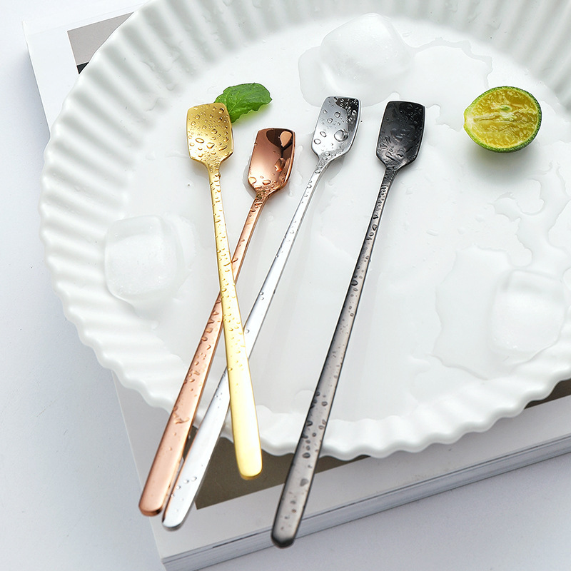 304不锈钢勺子 方头勺子搅拌勺创意长柄咖啡冰勺蜂蜜马克杯配套勺