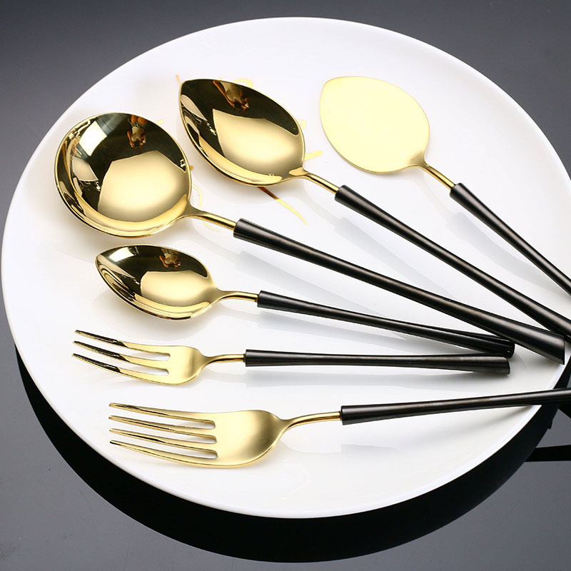 厂家直销亚丁系列304不锈钢黑金牛扒刀叉勺三件套四件套西餐餐具