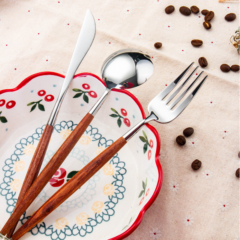 源头工厂红木系列304不锈钢刀叉勺现代简约式西餐餐具家用餐具批