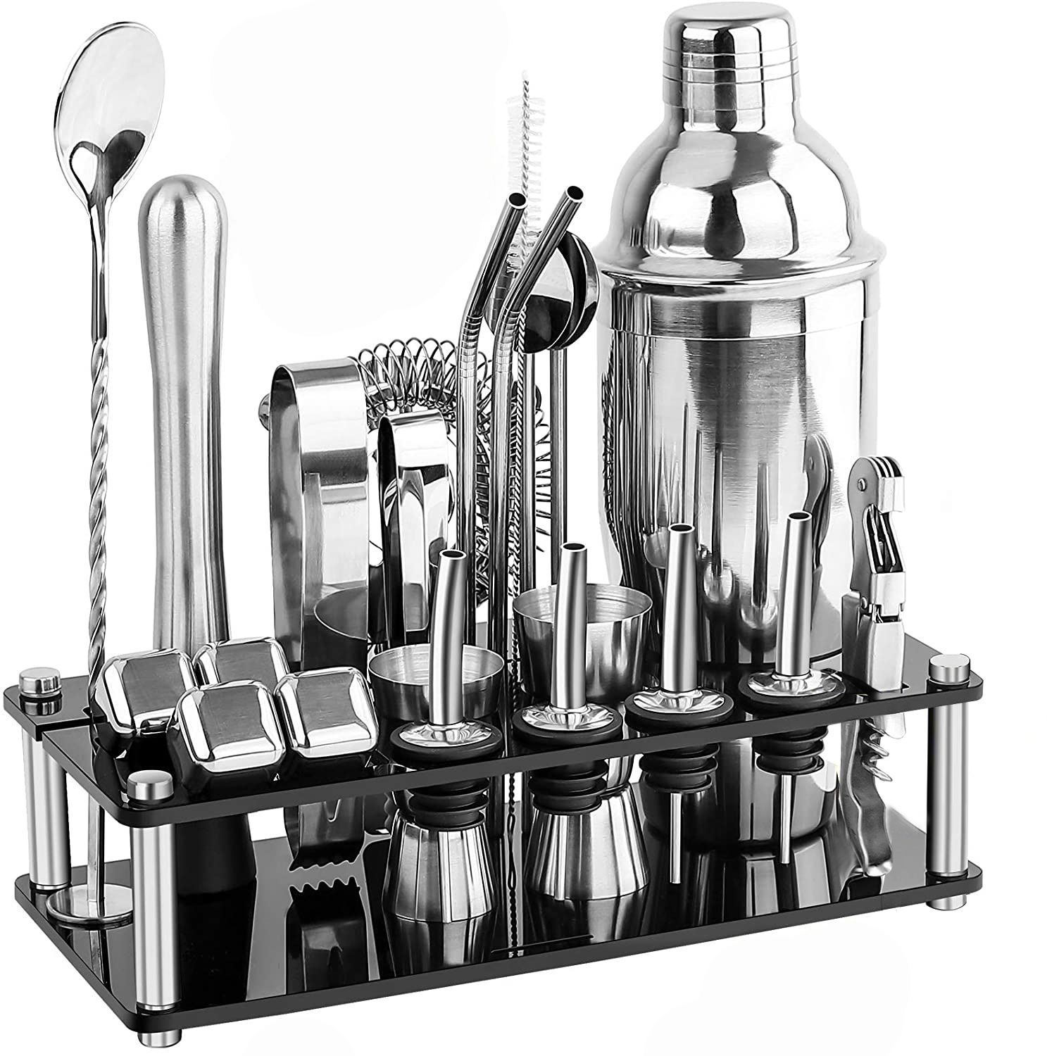 厂家直销跨境批发冰粒亚克力酒架套装鸡尾酒调酒器酒吧工具23件套