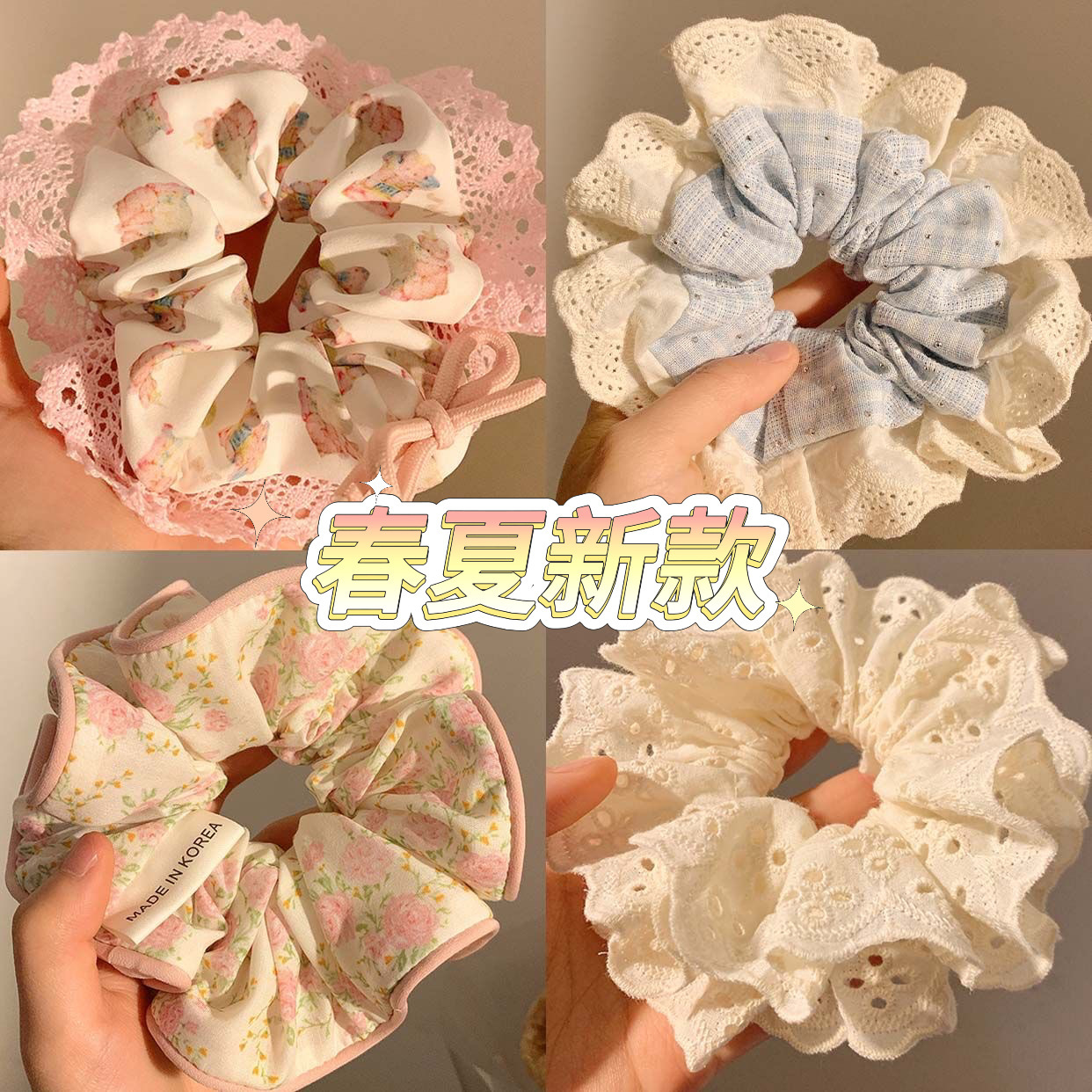 2025新款赵露思同款发圈女早春百搭头绳蕾丝花边大肠圈橡皮筋发饰