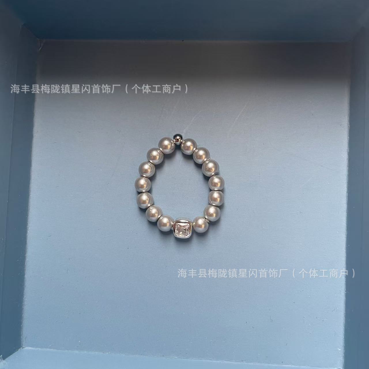 HEFANG何方气泡方糖戒指 简约轻奢银灰色珍珠指环 无痕代发