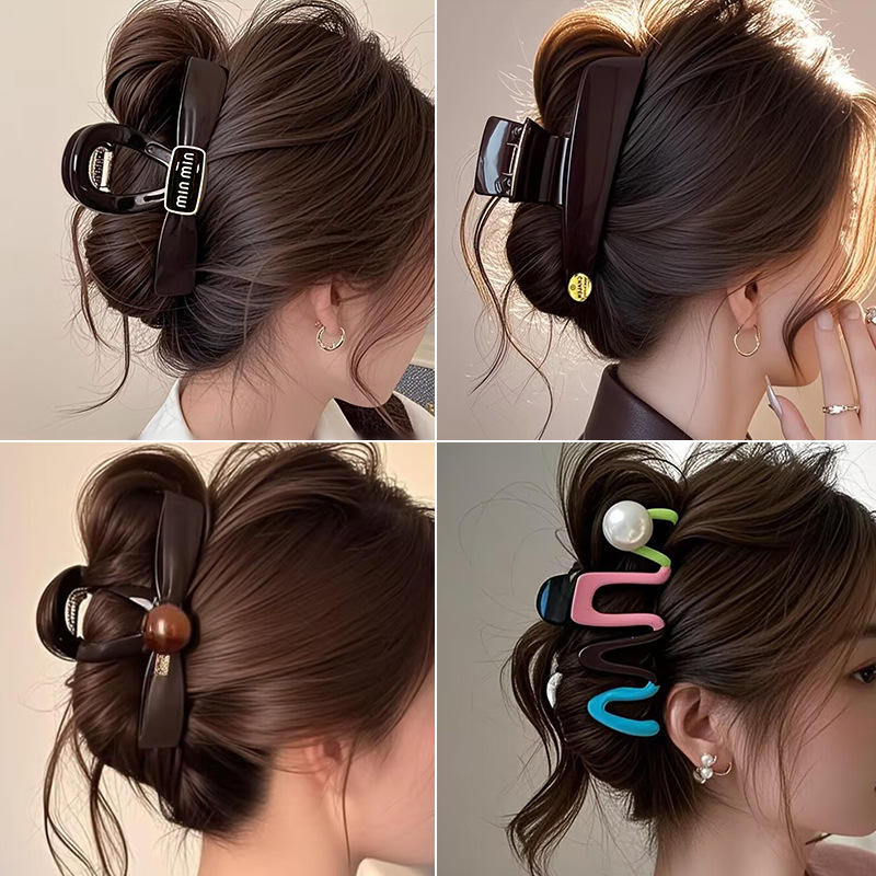 2025新款大号简约巧克力色抓夹女高级感鲨鱼夹后脑勺盘发发夹发卡