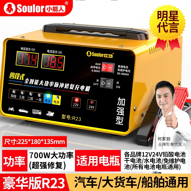 小能人汽车电瓶充电器12v24v智能脉冲修复摩托车电池充电机大功率