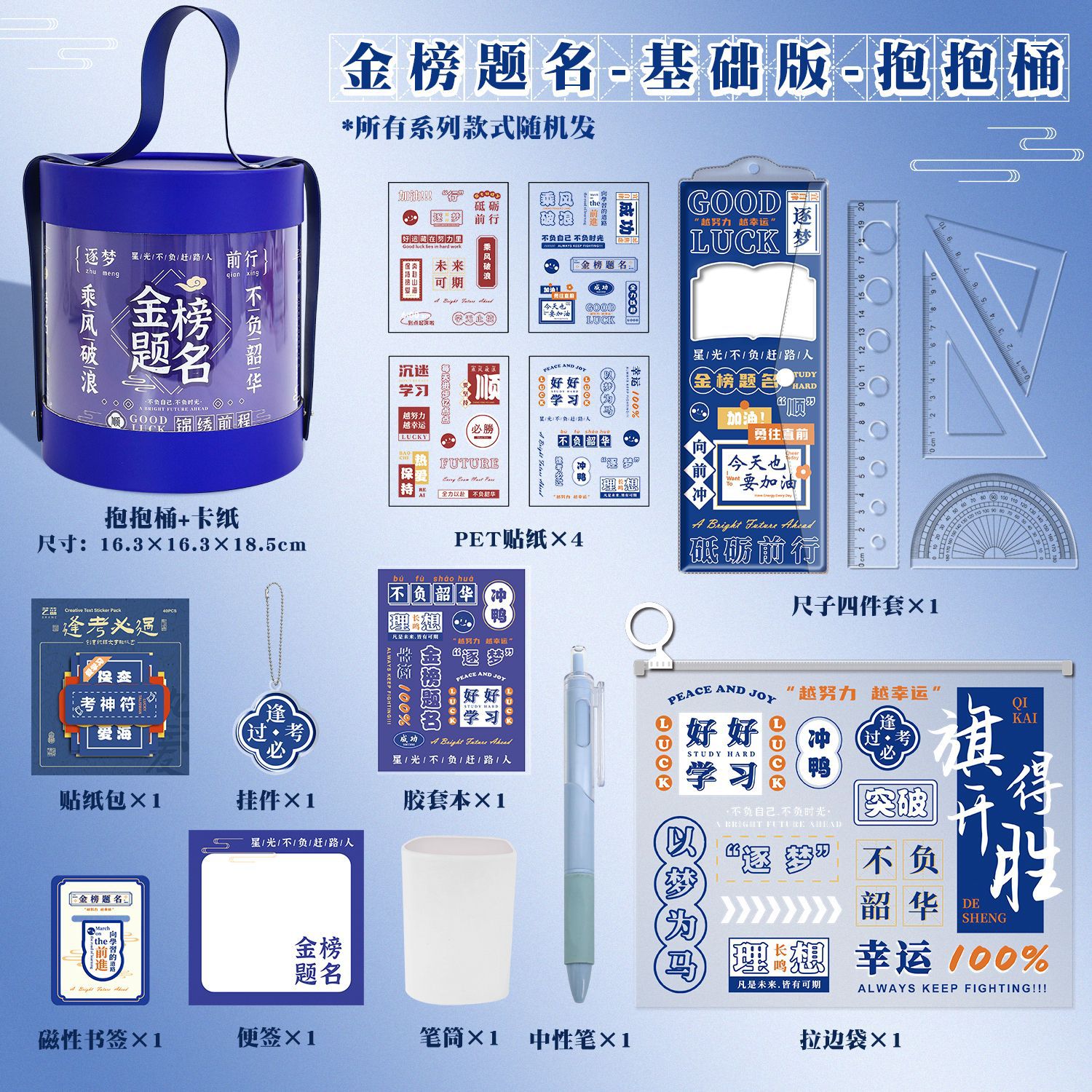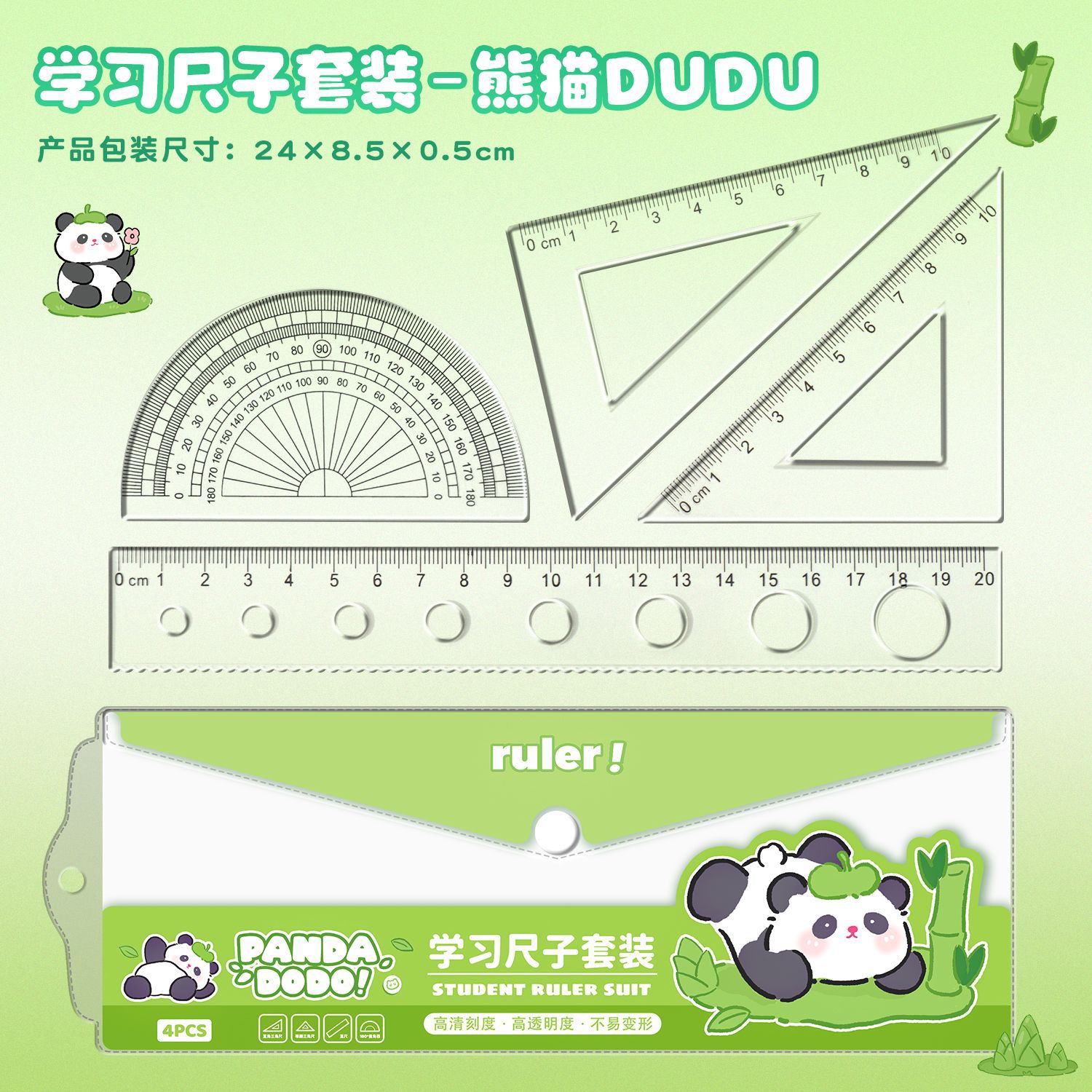 励志文字尺子套装祝福语学生直尺三角板量角器四件套透明套尺尺子