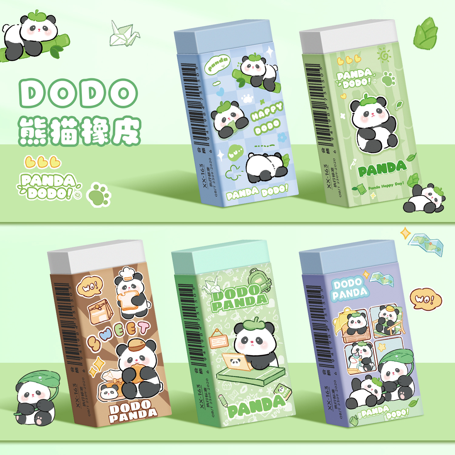 可爱熊猫橡皮擦卡通长条橡皮小学生铅笔擦创意无碎屑擦的干净橡皮