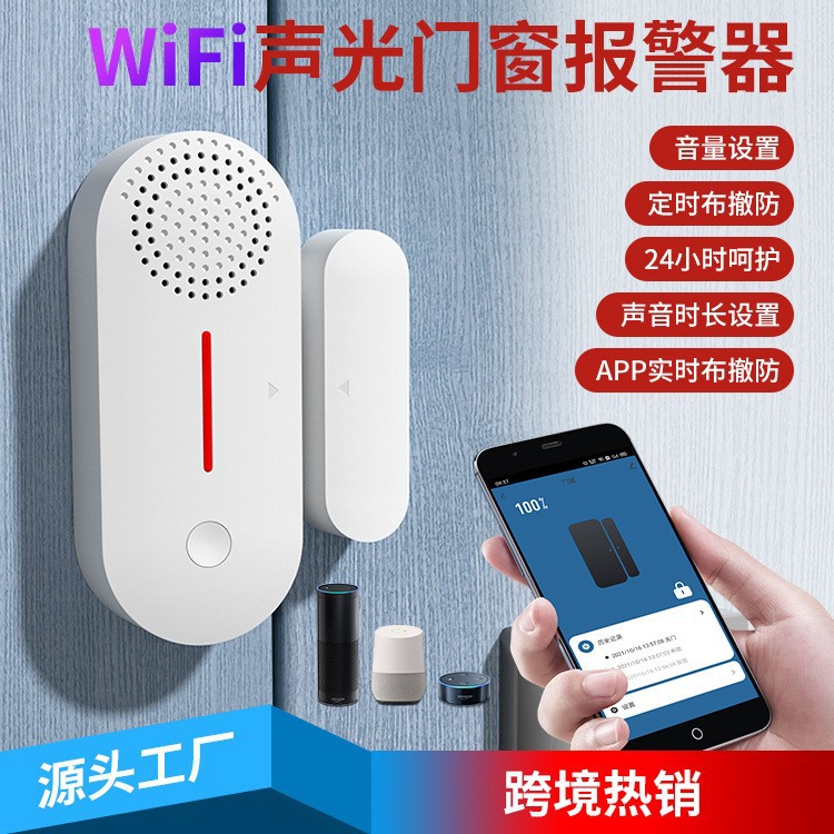 涂鸦智能WIFI门磁wifi门磁传感器声光门磁报警器无线门磁远程监控