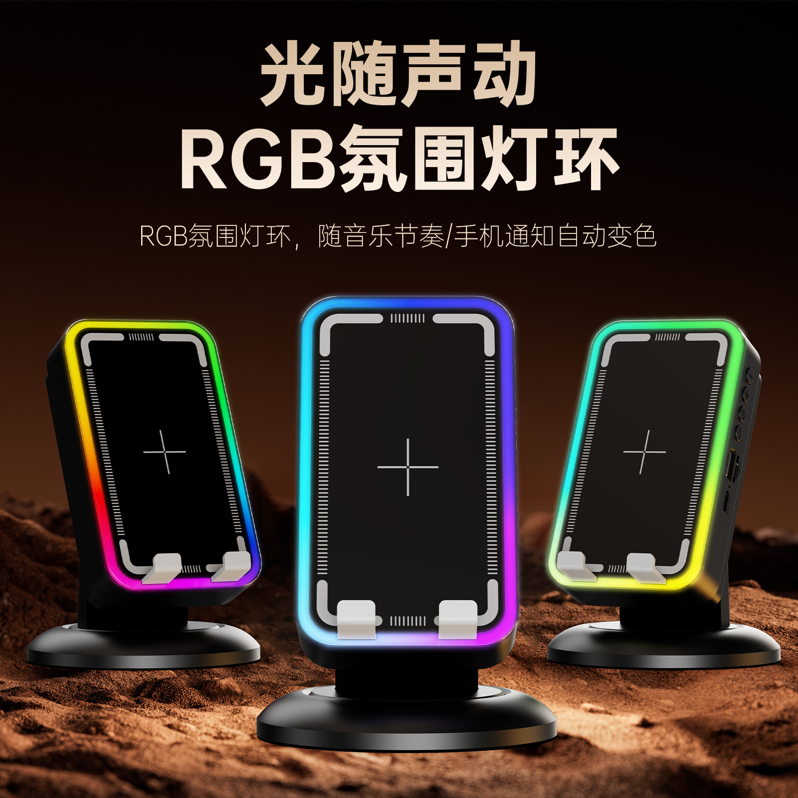 多功能五合一无线感应音响桌面手机支架一体RGB彩灯蓝牙音箱直播