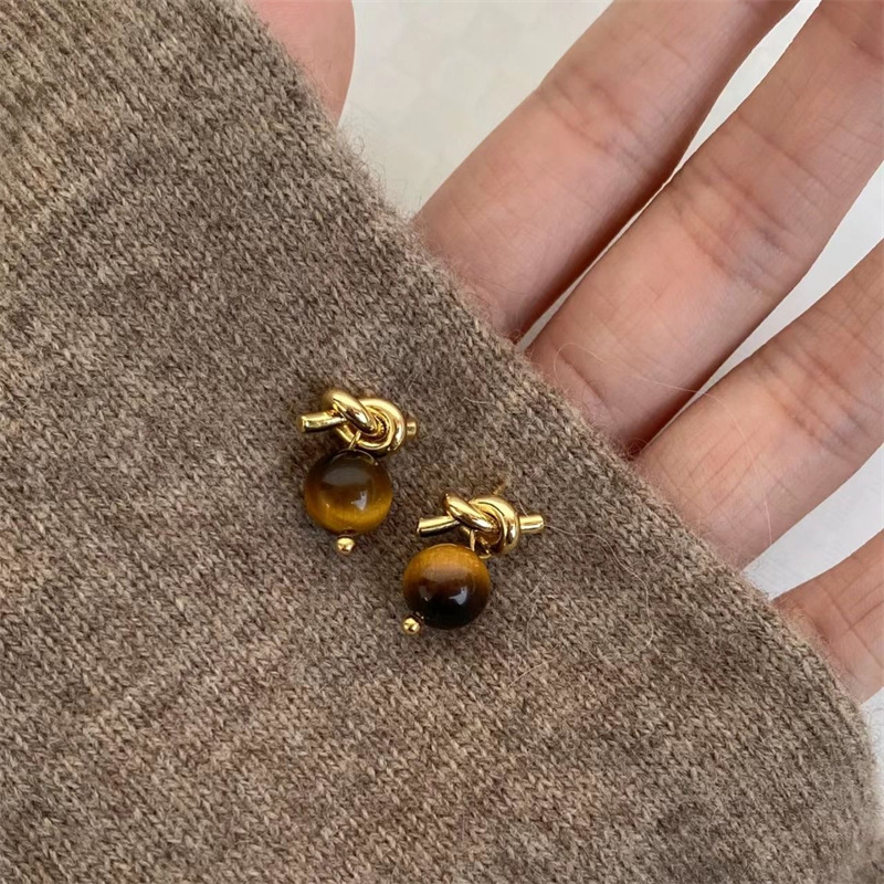 DOUDOUSTORE焦糖栗子 925银针美拉德几何耳钉氛围感复古耳环耳饰