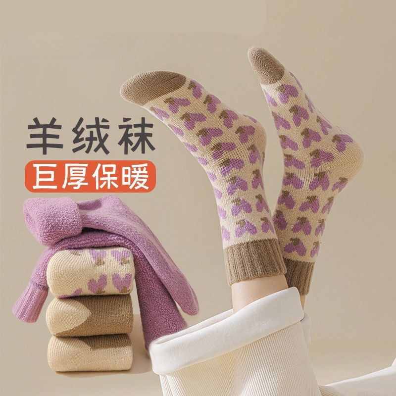 毛圈厚袜子女冬季中筒袜羊毛保暖加厚月子秋冬睡眠地板长筒袜巨厚