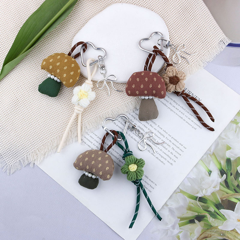 新款网红miu风布艺森系蘑菇花朵钥匙扣手机包包挂饰情侣百搭挂件