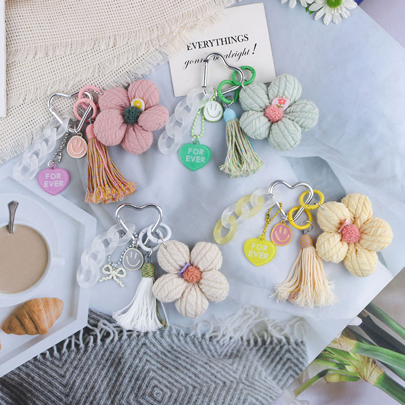 新款布艺花瓣花朵流苏亚克力挂牌笑脸百搭挂件礼物钥匙扣包包挂饰