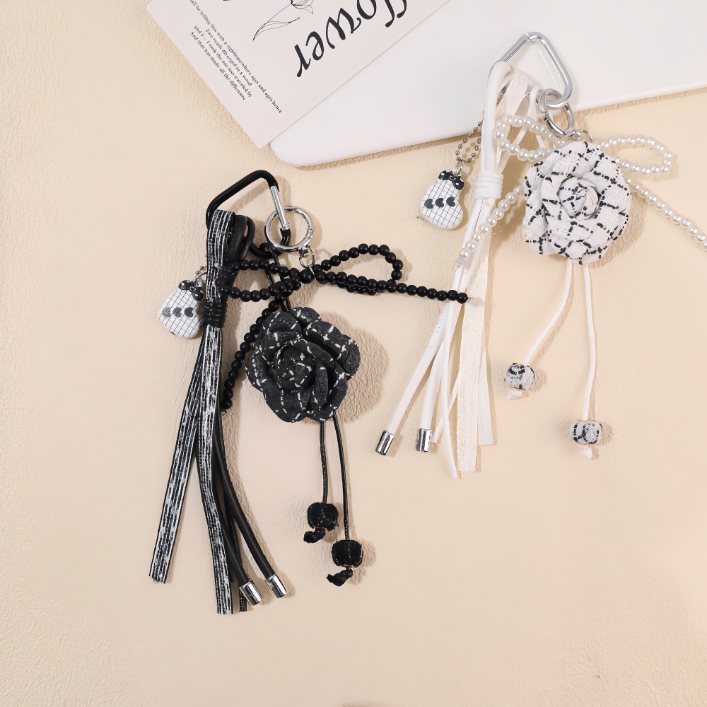 新款MIU系小香风山茶花挂件钥匙扣珍珠包挂饰钥匙链文创礼品批发