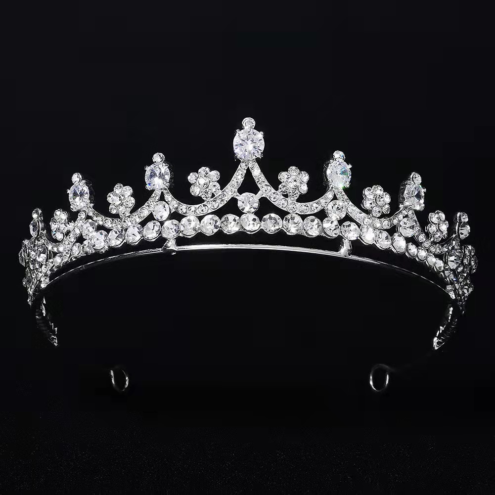 现货欧美新娘造型婚纱礼服配饰皇冠合金水晶发箍公主生日派对王冠
