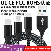 厂家批发一拖三手机数据线适用于苹果安卓type-c三合一编织充电线