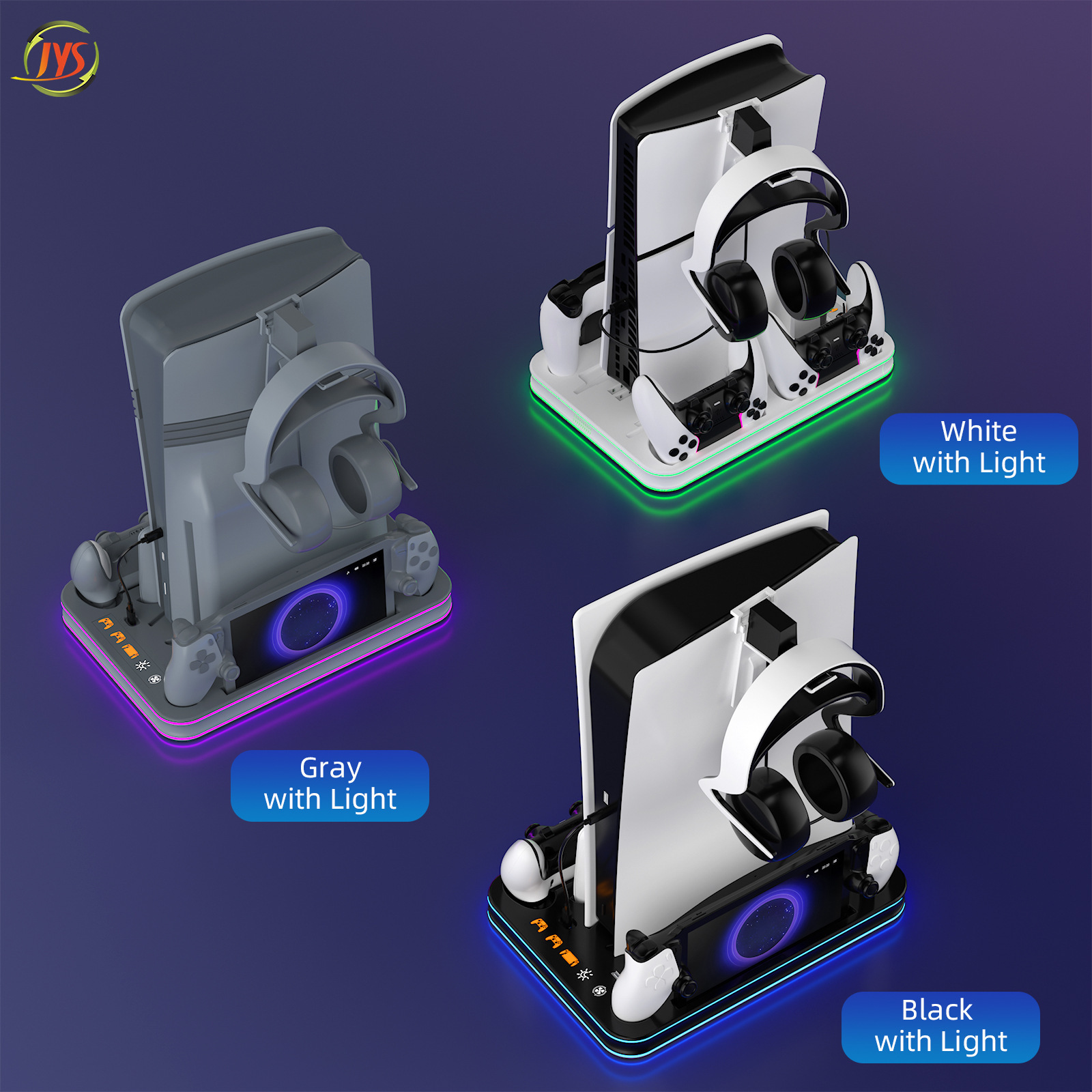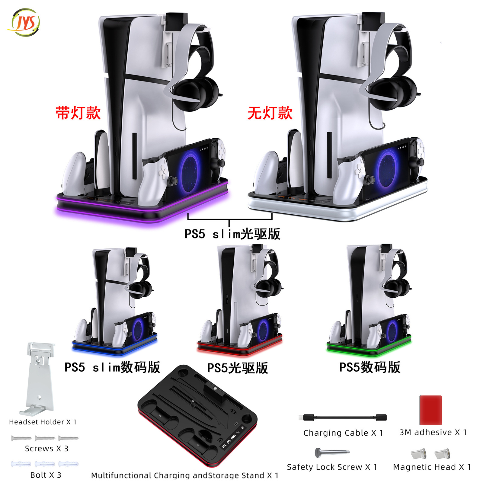 PS5/Slim/Pro主机通用散热RGB灯底座PS5手柄座充碟片收纳耳机挂架