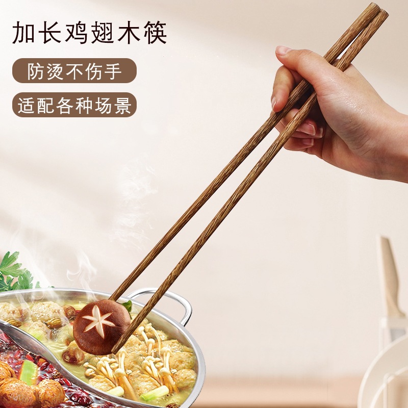 火锅筷子加长油炸捞面筷子家用鸡翅木筷子实木公筷刻字商用长筷子