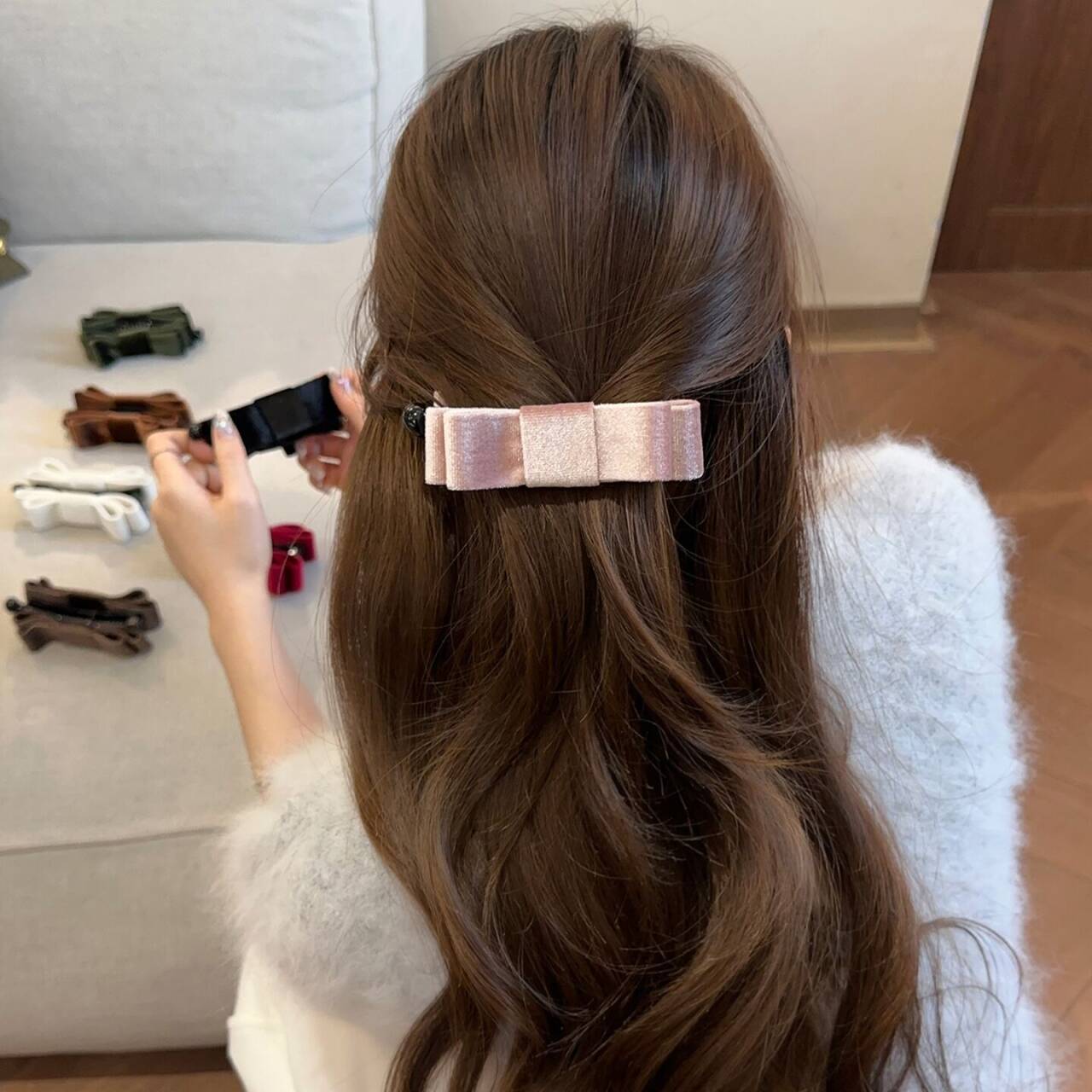 毛呢多层蝴蝶结香蕉夹大号发量多后脑勺盘发夹2025新款竖夹马尾夹