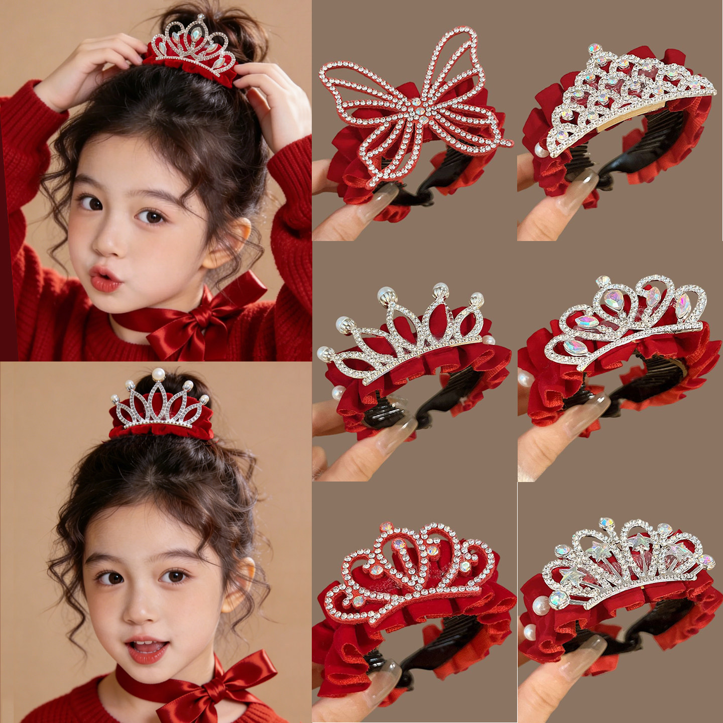 儿童丸子头抓夹女新年红色发夹2026新款女童高马尾抓夹发卡子发饰