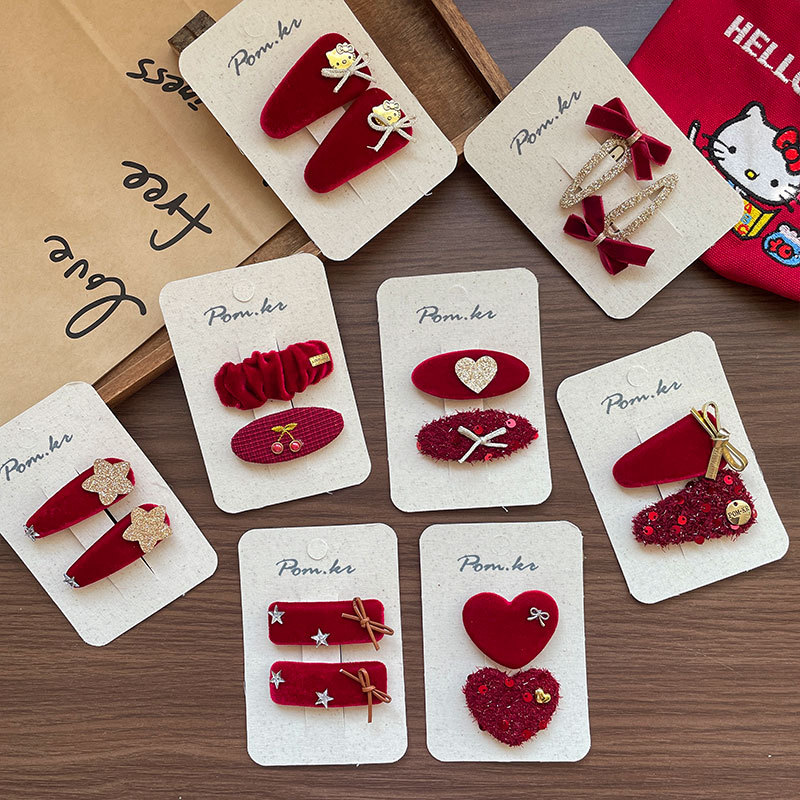 新款韩式红色系新年款发夹布艺手工儿童掰掰夹蝴蝶结甜美刘海夹女