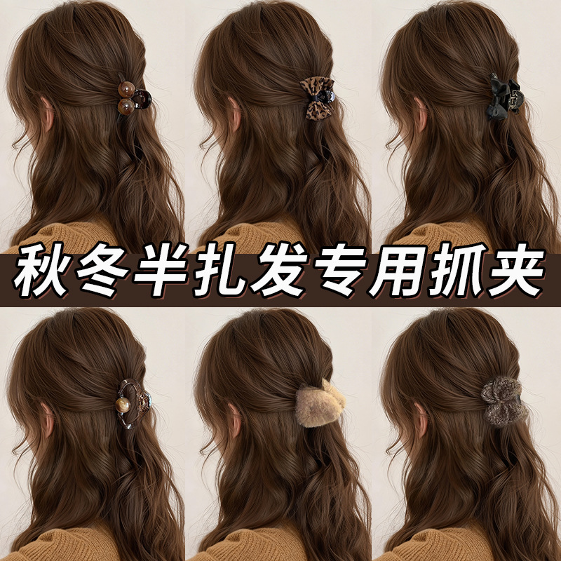 秋冬刘海小抓夹女高级感2025新款半扎发夹后脑勺发量少小夹子头饰