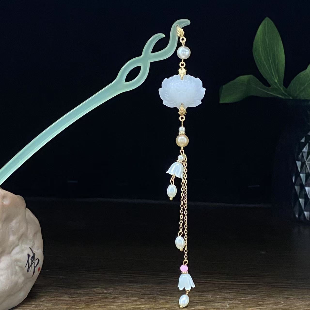 新中式发饰月光石蝴蝶发簪古风汉服盘发流苏簪子简约发钗小众头饰