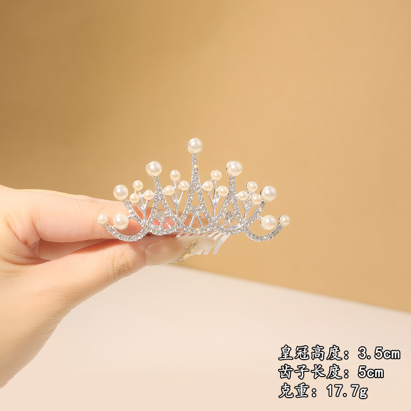 儿童公主发梳皇冠头饰女童宝宝高级感水钻发卡插梳小女孩生日王冠