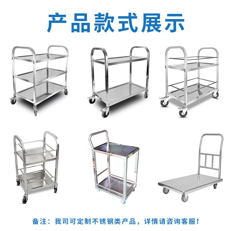 不锈钢餐车三层手推车 移动加厚型二层无磁酒店送餐车酒水车现货