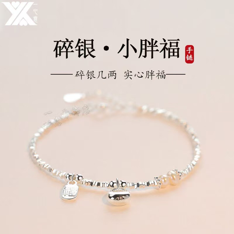 【小胖福】S925纯银原创设计碎银几两手链女轻奢小众设计福字手串