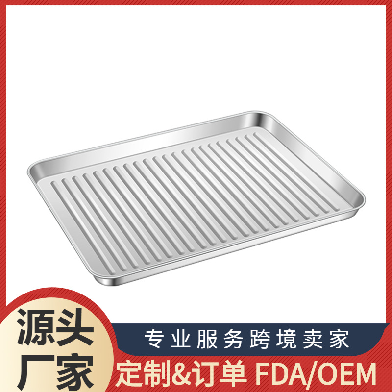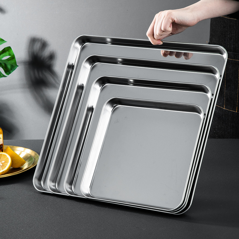 定制食品级304不锈钢平底盘 正方形加厚烘焙蛋糕盘家用烤肉烤盘