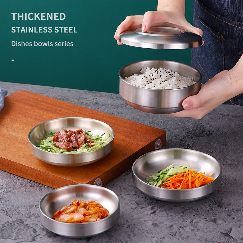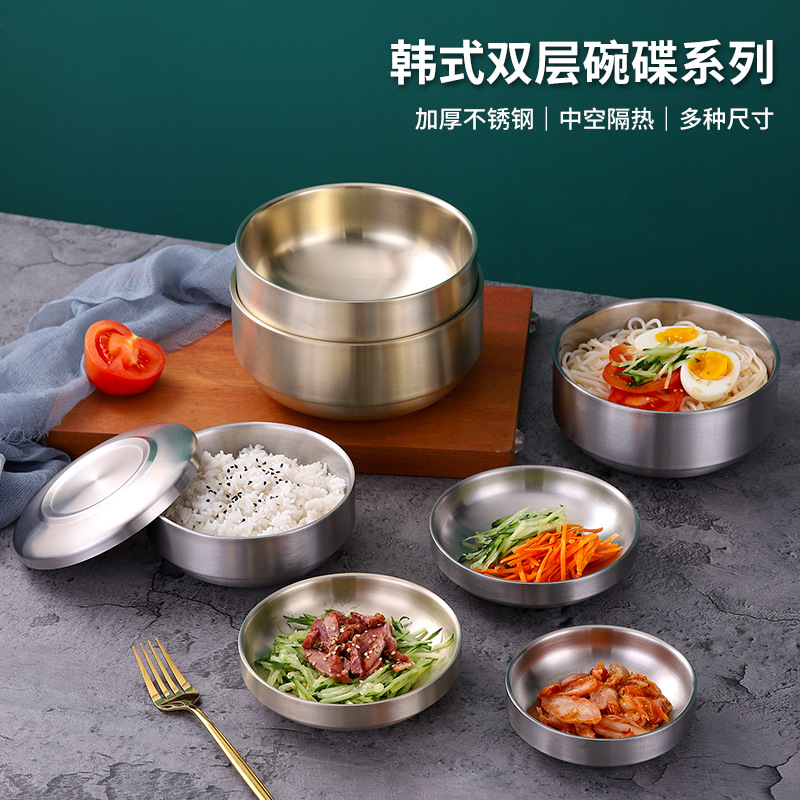 一件代发韩式不锈钢成人米饭碗金色沙拉生菜碗双层面碗冷面碗汤碗