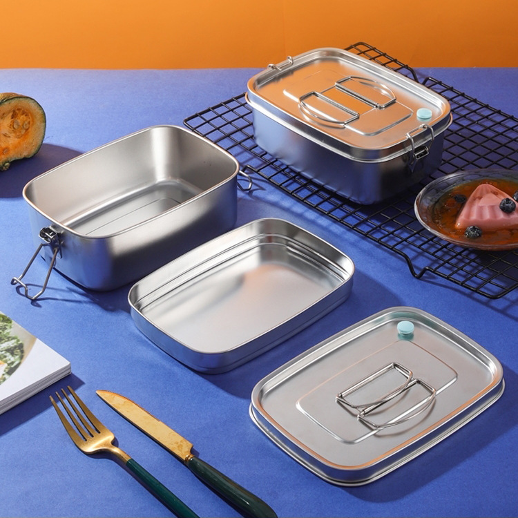 304方形饭盒大容量单层便当盒带卡扣户外饭盒野餐盒带盖学生餐盒