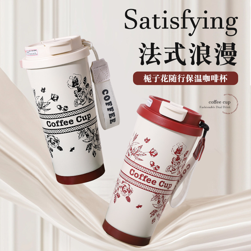 316不锈钢真空保温杯时尚便携双饮咖啡杯高颜值花朵系列随行水杯