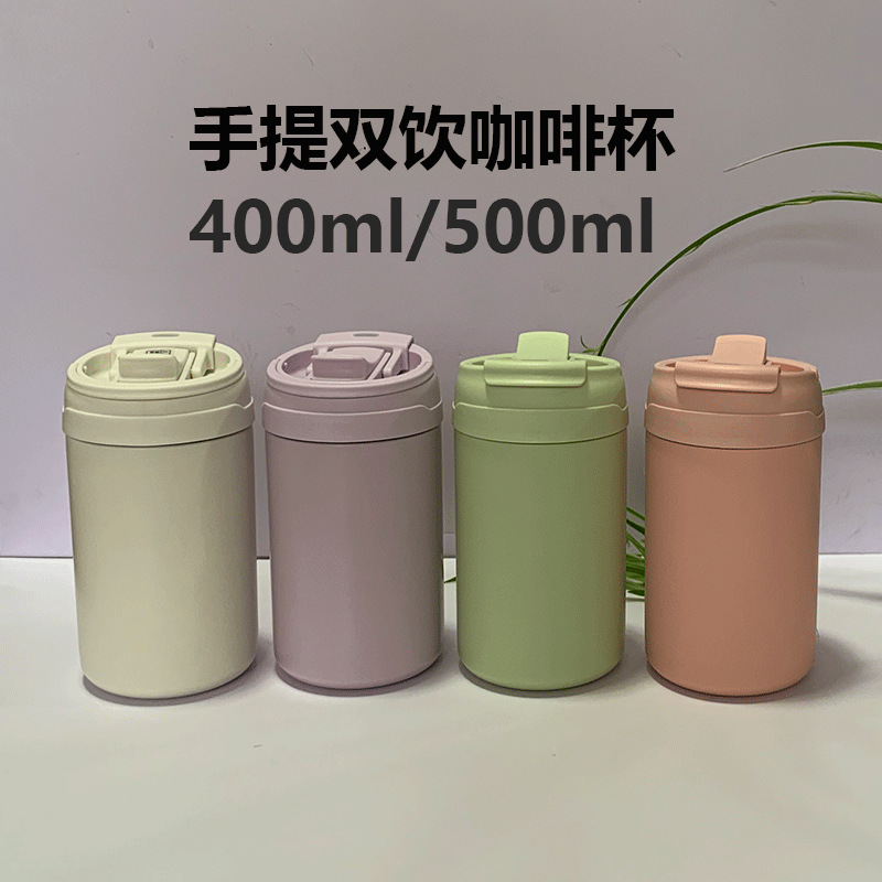 保温杯316陶瓷内胆咖啡杯大容量女高颜值便携双饮随行吸管水杯子