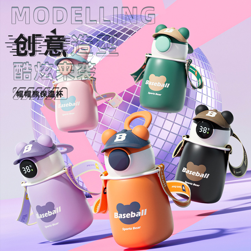 帽帽熊高颜值ins风保温杯抖音同款学生时尚简约不锈钢水杯子吸管