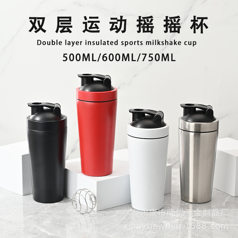 304双层不锈钢摇摇杯多功能保温杯搅拌奶昔杯户外健身运动摇摇杯