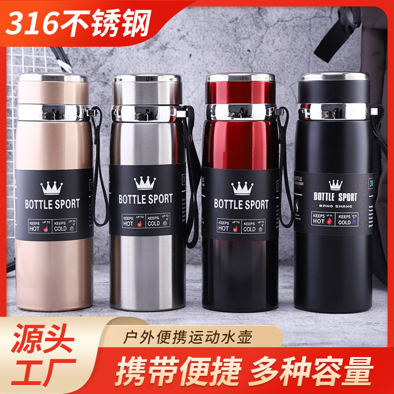 商务316不锈钢吊带保温杯户外便携运动水壶大容量太阳壶礼品杯