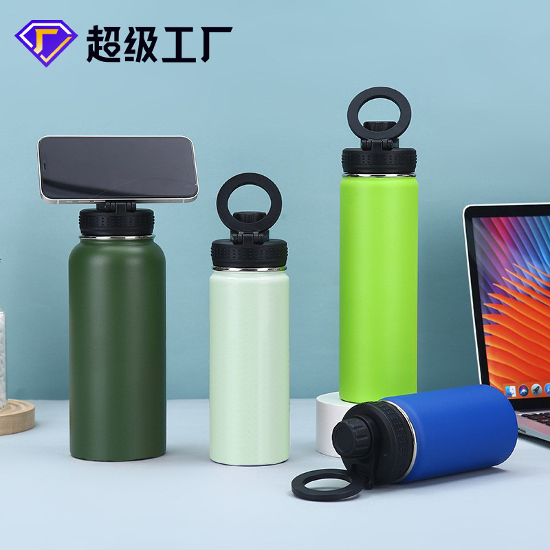 跨境亚马逊新品磁吸盖太空壶户外便携磁吸盖手机支架多功能保温杯