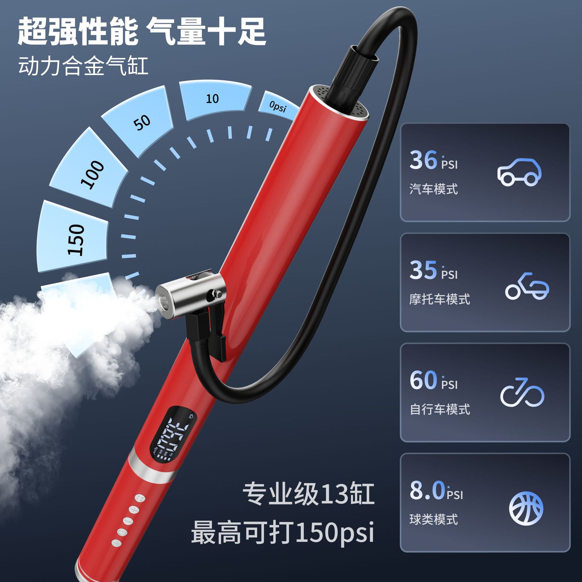 现货数码显示轻量小巧便携充气泵 变速无刷电机超高续航厂家批发