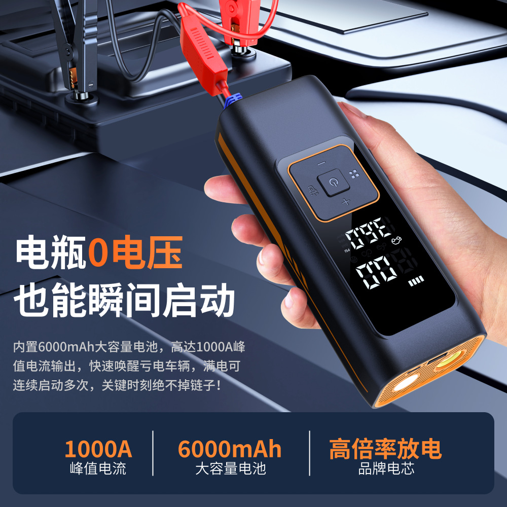 车载充气泵搭电一体机智能无线打气泵应急启动电源户外便携多功能