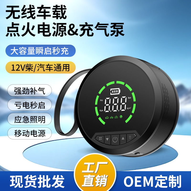 车载充气泵汽车应急启动电源充气搭电宝便携亚马逊圆形无线充气泵