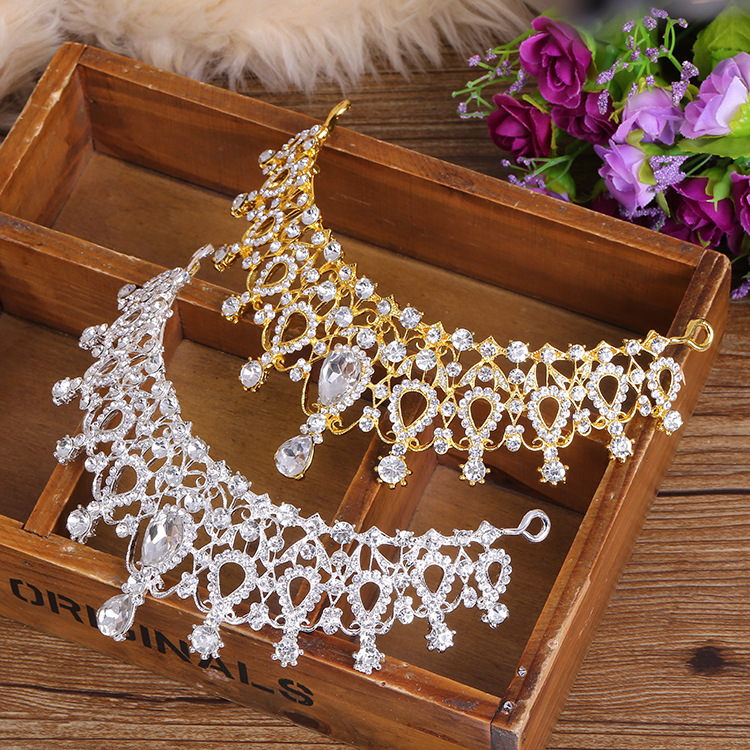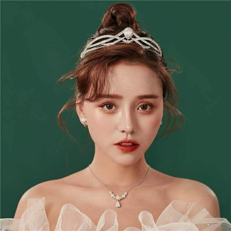 新款镶锆石水滴形新娘皇冠时尚高端设计公主生日宴会礼服头饰皇冠